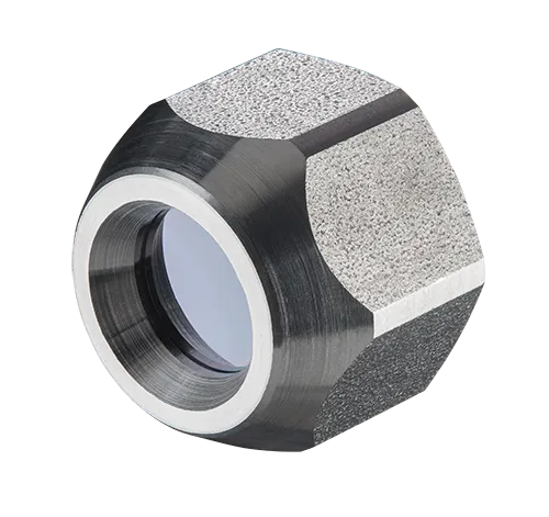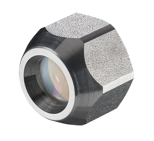 컴팩트 파이로미터용 클로즈 포커스(CF) 렌즈는 짧은 거리에서도 작은 물체를 정밀하게 측정할 수 있도록 설계되었으며, 최소 측정 지점 크기는 사용되는 센싱 헤드 버전에 따라 달라집니다. 이 렌즈는 특정 투과율 값을 가지며, 측정 시 신호 손실을 최소화합니다. CF 렌즈는 내부 나사형과 외부 나사형 두 가지 유형이 있습니다. 내부 나사형은 센싱 헤드에 직접 조립되며, 외부 나사형은 대형 하우징 또는 라미나 에어퍼지 장치에 장착할 수 있도록 설계되었습니다. 렌즈는 끝 지점까지 회전하여 쉽게 설치할 수 있습니다. 최적 성능을 위해 렌즈 표면을 오염물질로부터 깨끗하게 유지하는 것이 중요합니다.