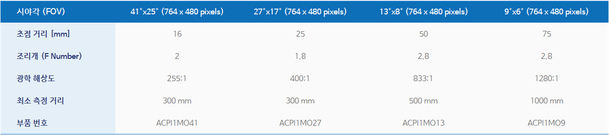 - 작은 MFOV와 높은 거리 대비 측정 정밀도 제공