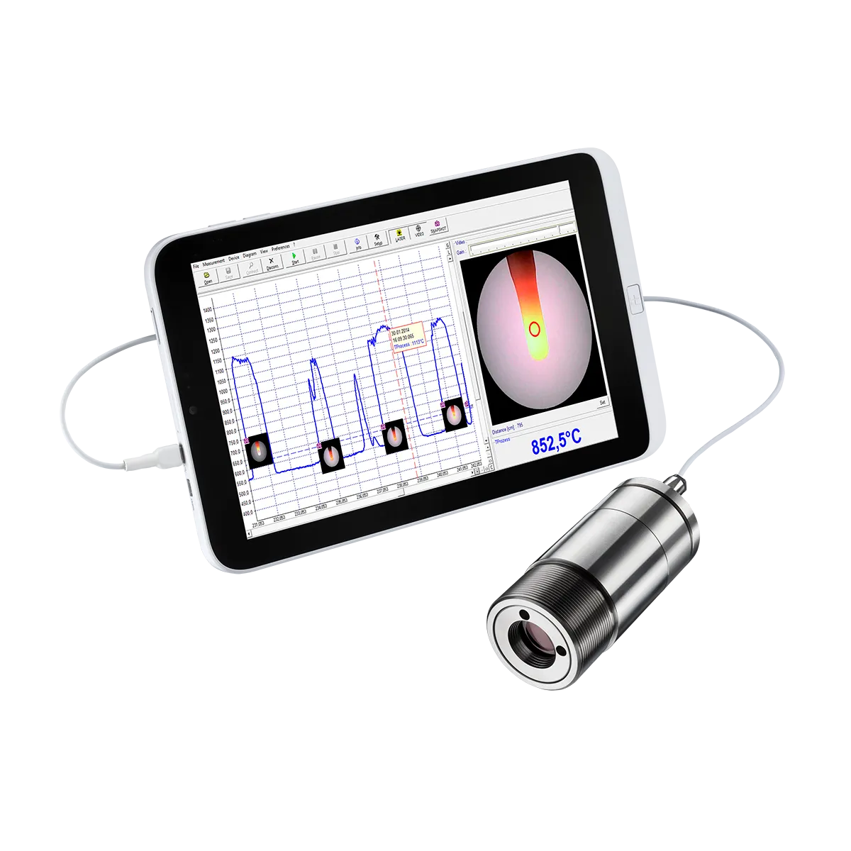 Optris CSvideo 3M 시리즈는 산업 환경에서 접촉이 어려운 상황에서도 비접촉 온도 측정과 영상 모니터링을 결합한 적외선 온도계입니다. 통합된 비디오 조준 기능을 통해, 특히 까다로운 환경이나 고온 대상 측정 시에도 정밀한 조준이 가능합니다. 비디오 조준과 적색 십자선 레이저를 동시에 활용하면 센서 정렬이 간편해져, 효율적이고 정확한 측정을 위한 설치 과정이 간소화됩니다.