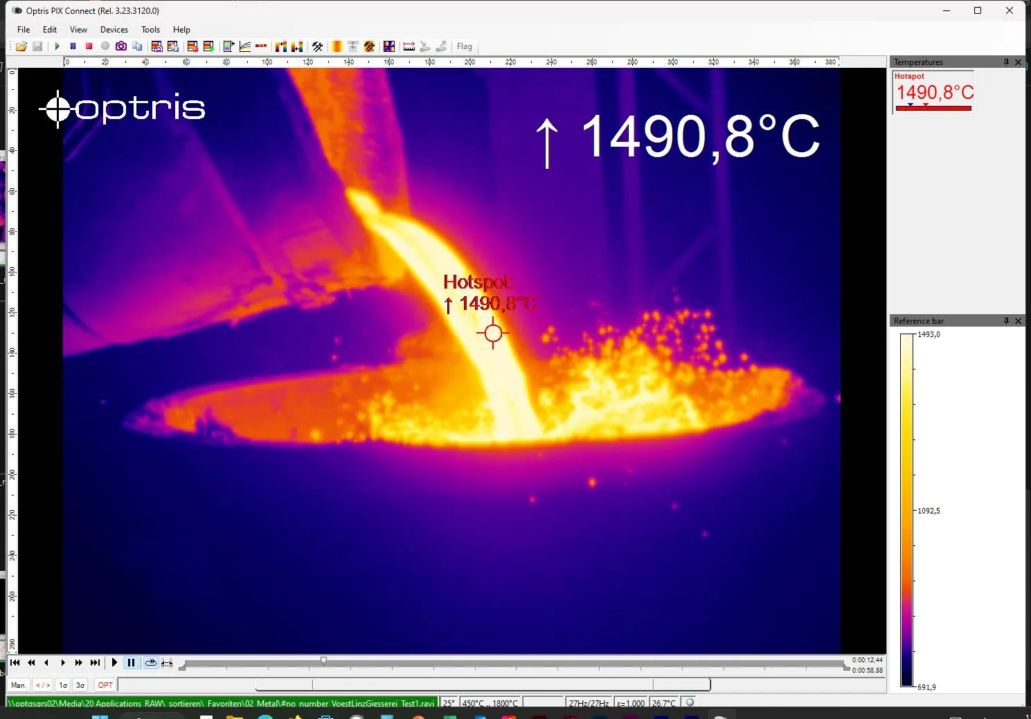 Optris Xi 05M MeltScope는 단파장 열화상 카메라로, 까다로운 대상의 비접촉 열화상 측정에 탁월한 성능을 제공합니다. 이 카메라는 용융 금속, 강철, 세라믹과 같은 고온 소재의 표면 온도를 정확하게 측정할 수 있습니다. 자율 열 측정 기능과 모터 구동 포커스를 갖추어 산업 환경에서 안정적이고 편리하게 사용할 수 있으며, 추가 하드웨어 없이도 운용이 가능합니다. Ethernet, USB 인터페이스뿐만 아니라 아날로그 및 디지털 공정 인터페이스를 지원하여, 용융 금속용 적외선 카메라를 제어 시스템과 산업 장비에 손쉽게 통합할 수 있습니다.