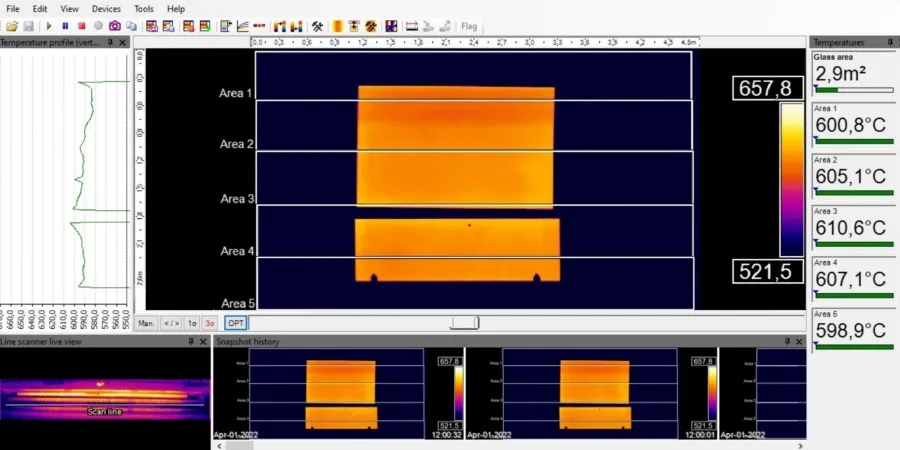 이 기능은 영상의 대각선을 활용해 픽셀 수를 확장하고, 무제한의 라인을 고속으로 기록하며, 어떤 해상도의 열화상 이미지도 생성할 수 있어 넓은 시야를 통한 정밀한 공정 분석이 가능합니다. 또한 소프트웨어의 자동 슬릿 감지 기능은 적외선 카메라의 초기 설정과 정렬 작업을 간소화합니다.