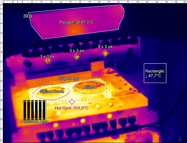 In the context of infrared imaging, a region of interest (ROI) is a specific area within a thermal image selected for detailed analysis. Users can define this area to focus on particular parts of the image where temperature measurement or monitoring is important. The ROI allows for targeted temperature data collection and processing and often forwards this temperature information to other systems. Regions of Interest are also often referred to as measurement fields in thermal image processing.