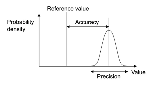 반면에 정확도는 측정된 값이 피측정 물체의 실제 온도에 얼마나 가까운지를 나타냅니다. 높은 정확도는 측정값이 올바르다는 것을 보장하는 반면, 높은 재현성(반복성)은 반복 측정이 유사한 결과를 산출하도록 보장합니다. 따라서 재현성은 측정을 보정하기 위한 전제 조건이며 종종 측정의 견고성을 보여줍니다.