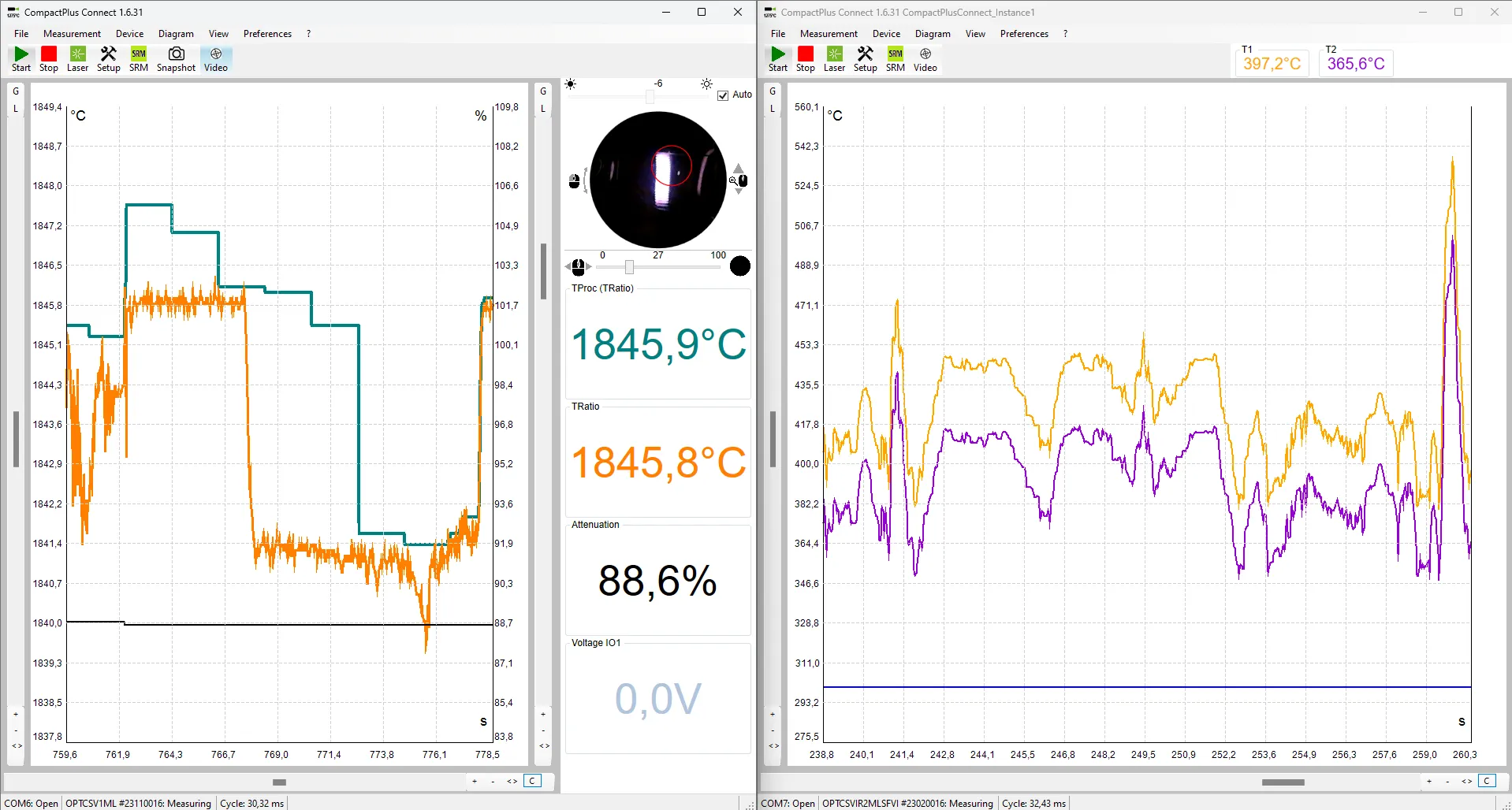비디오 파이로미터의 경우, CompactPlus Connect 소프트웨어는 측정 지점을 정밀하게 정렬할 수 있도록 실시간 영상 신호 기능을 제공합니다. 사용자는 밝기 필터를 제어하고, 영상 화면을 회전하거나 확대·축소하여 최적의 시야로 확인할 수 있습니다. 또한 알람 값에 도달하면 스냅샷을 자동으로 촬영해, 측정과 연관된 시각적 기록을 남길 수 있습니다.