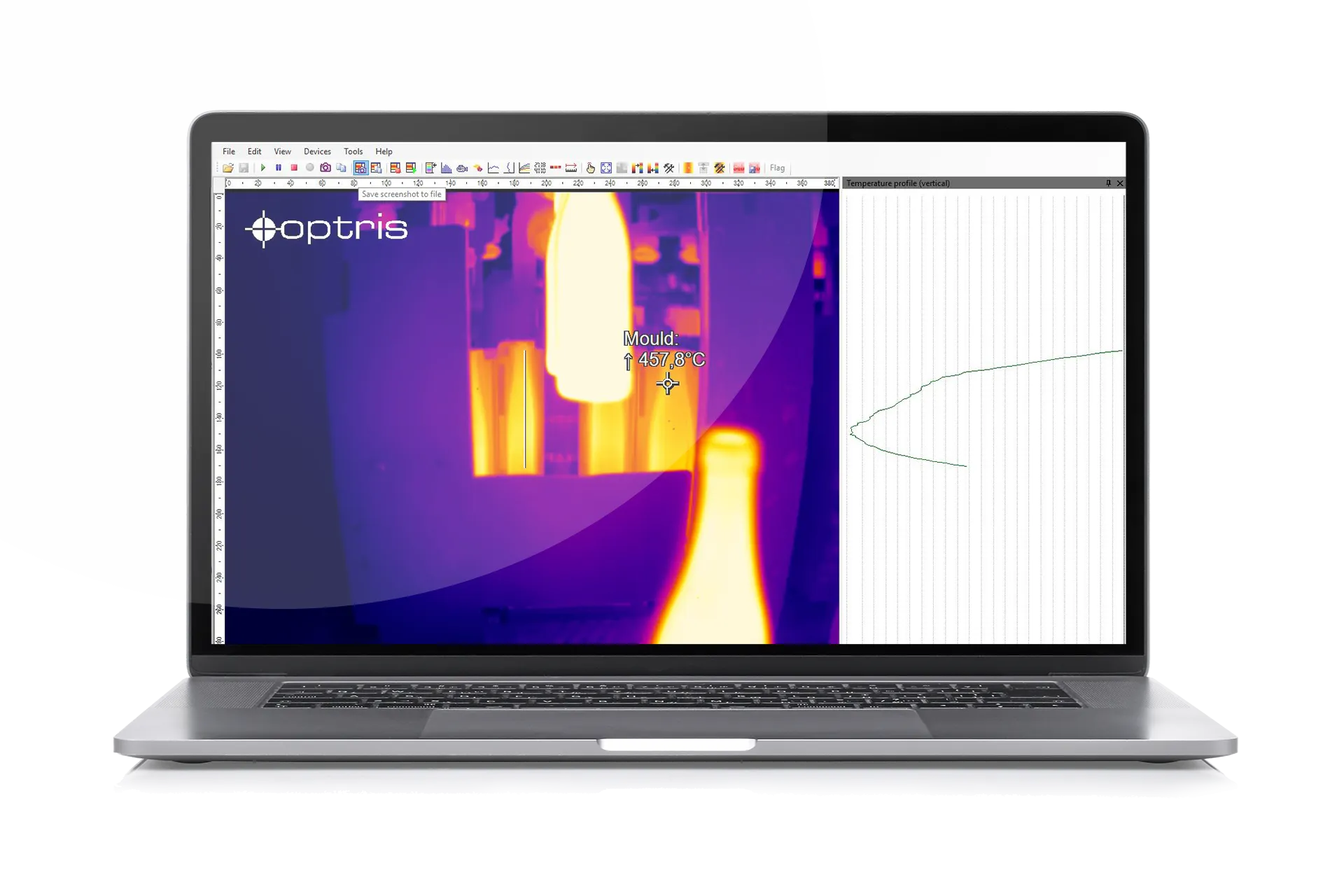 PIX Connect 소프트웨어는 핫/콜드 스팟 검색, 히스토그램, 프로파일, 이미지 차감, 알람, 녹화/재생 기능을 제공하여 공정 엔지니어가 한 도구에서 모든 분석을 수행할 수 있습니다. 실시간 또는 저장된 열화상 영상에서 개별 픽셀의 보정 온도를 추출할 수 있어 품질 문서화도 추적 가능합니다.