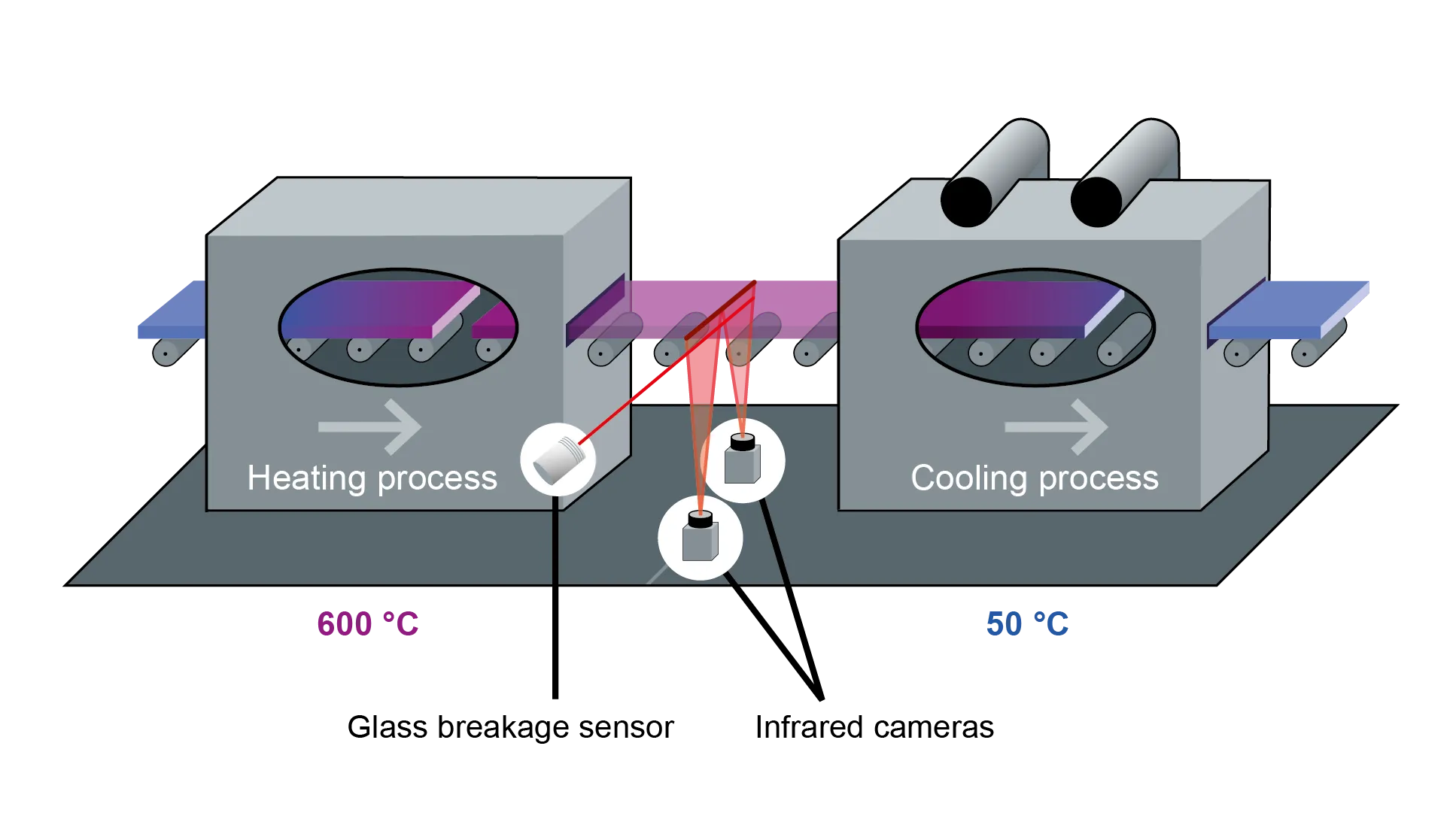 시스템에는 PI 640i G7 적외선 카메라 2대가 롤러 컨베이어 아래 설치되어, 코팅이 없는 고방사율 면을 라인 스캐닝 모드로 측정합니다. VGA 광학 해상도 640 × 480 픽셀, 7.9 µm 스펙트럼 범위, 최대 온도 1500 °C를 지원하여, 정확하고 반복 가능한 열 공정 데이터를 제공합니다. 두 카메라가 함께 작동할 경우, 최대 1600픽셀 스캔 라인을 구현하여 최대 4.3 m 폭의 유리를 90 cm 거리에서 전체적으로 검사할 수 있습니다.